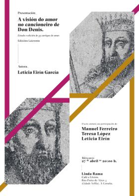 Presentación do libro A visión do amor no cancioneiro de Don Denis. Estudo e edición de 33 cantigas de amor, o xoves 27 de abril, ás 20.00 h, na Linda Rama da Coruña.